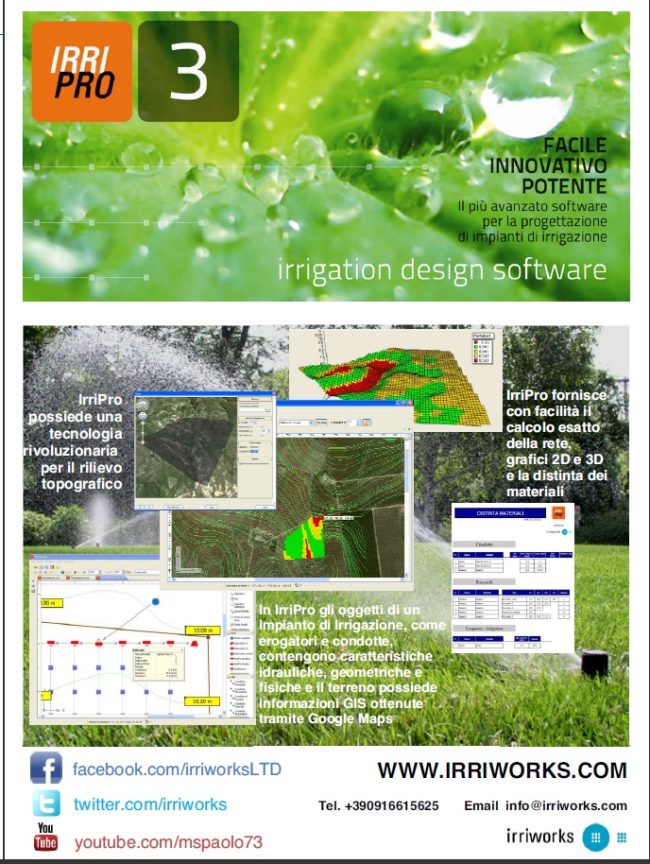 Irriworks is a young company that has created an innovative irrigation design software called IrriPro. Link to Agricultura.it page