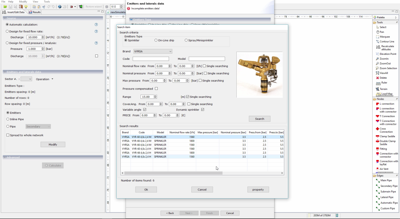 IrriPro contains a database with more than 30,000 elements of the most popular brands