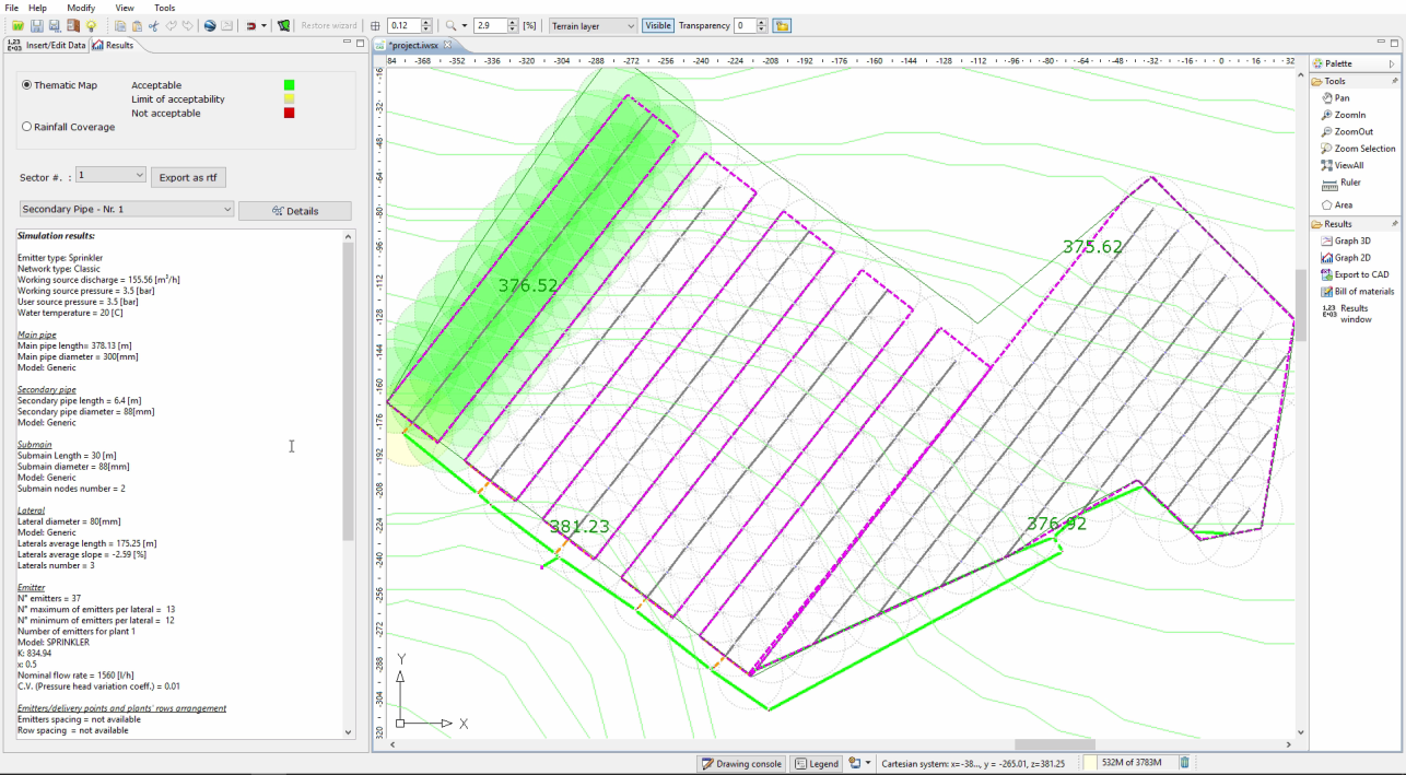 IrriPro starts from engineering and hydraulic requirements to create the best project from a technical and functional point of view. The competing applications on the market today are CAD drawing tools capable of evaluating a system only through an approximate hydraulic verification