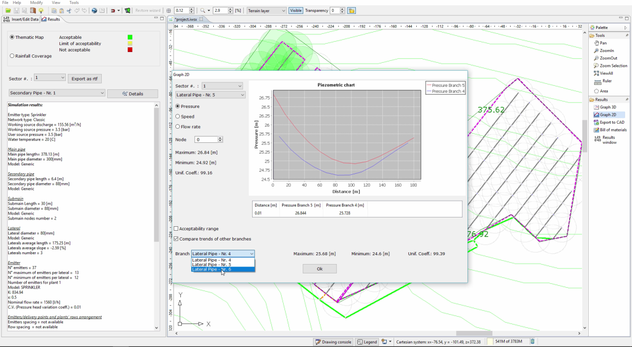 • 2D graphs of the calculated hydraulic quantities