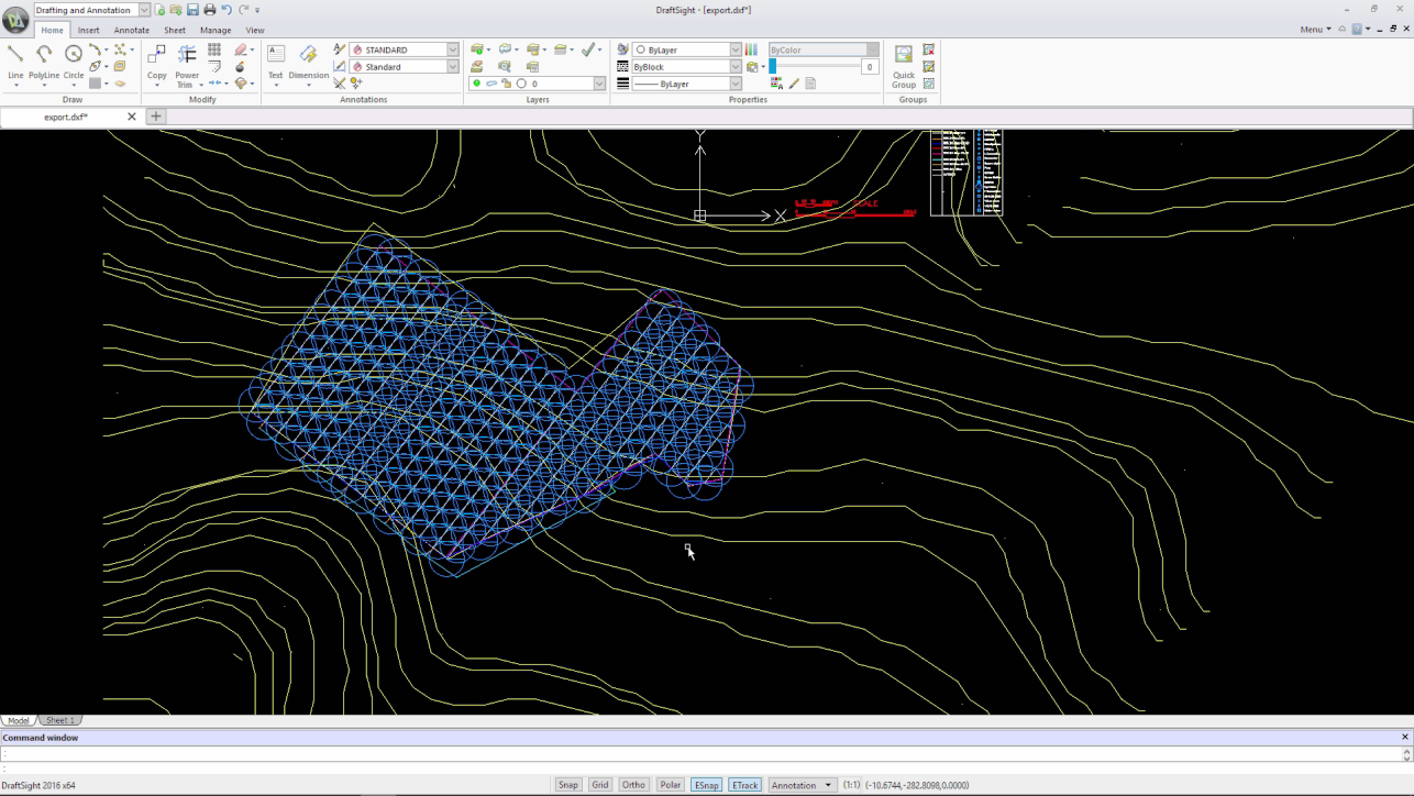• CAD export with typologies divided by layer, with symbol legend