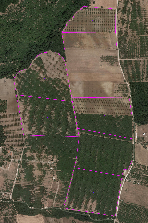 Plant near Soriano (Lazio) on approximately 45 hectares of land with power from a well. The plants have a planting space of 5 x 4 metres. A requirement of 20 litres/day per plant has been estimated (with 1 supply per week).