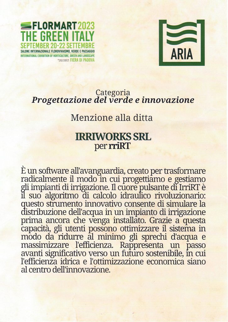 Mention to the company IRRIWORKS SRL for IrriRT.